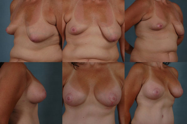 She is shown (bottom 3 views in each set) 4 months later with a nicely healed, beautifully aesthetic C cup outcome. A great triumph!