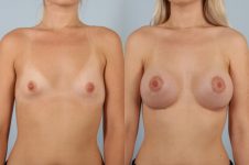 Tuberous constricted breast Hyperplasia can be a challenging condition. It requires the release of constricted tissue, augmentation, and simultaneous periareolar mastopexy to reduce the remaining constriction around the areola. This is an example of a fine outcome.