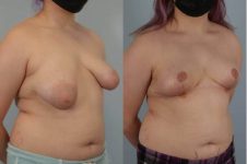 This patient presented with severe asymmetric tuberous constricted breast malformation. She preferred to be a small B cup. A combination of “deconstruction” release of tuberous constriction, and breast lift/reduction fixed her issues. This is an early fine result from a complex problem.