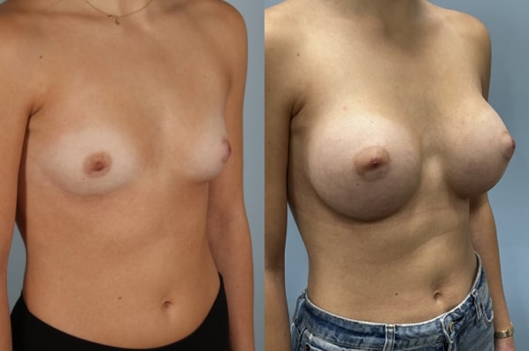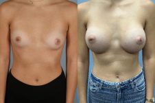 Constricted breast hypoplasia is when breasts are small and encapsulated tightly. This requires additional surgical expertise to treat this condition. Look at this beautiful transformation from AA to full C outcome using silicone gel implants placed under the muscle through an inframammary incision you can barely see! I specialize in breast augmentation and especially the management of complex construction breast anatomy.