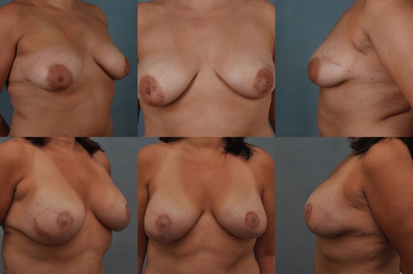 This young woman presented with breast cancer and a plan to undergo bilateral reconstruction with latissimus flap and implants. She is shown after reconstruction is complete. Remember the potential severe disfigurement of mastectomy? A beautiful lifted, soft, cosmetic outcome that fully camouflages the mastectomy.
