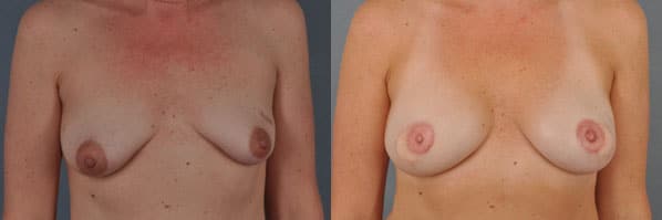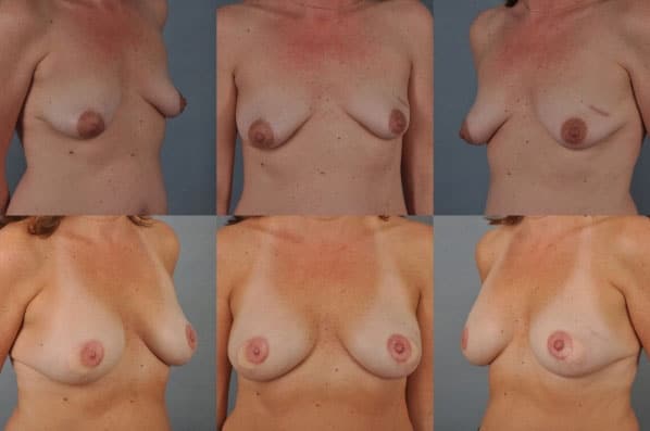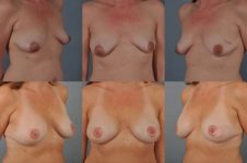 This patient presented with a unilateral left breast cancer and plans to undergo bilateral mastectomy. She is shown after bilateral latissimus flaps and implant reconstruction. Latissimus flap is an outstanding way to camouflage the mastectomy defect.