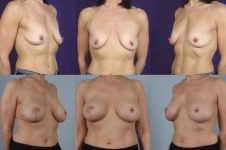 This patient was diagnosed with breast cancer of the right breast. She underwent a right total mastectomy with immediate reconstruction using a latissimus flap and implant. Later a nipple reconstruction has been done. In the end, it hardly looks like a mastectomy was done.