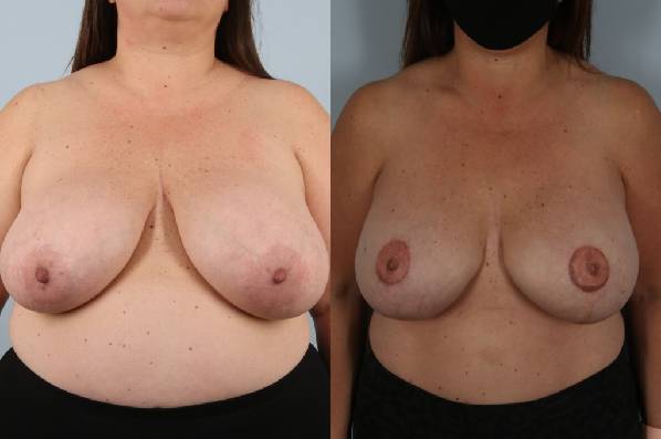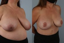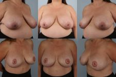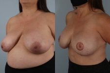 This patient presented with large and saggy breasts and a need to undergo bilateral mastectomy. I combine vertical (breast lift pattern for mastectomy) incision with weekly sequential rapid air filled expansion, and subsequent replacement of expanders, with implants, reshaping with internal Allograft internal tissue bra slings, and finally fat grafting and 3D tattooing of nipple areola. (I use 4-5 pigments to create a nipple/areola which looks real!) A great outcome.
