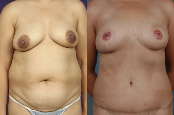 This woman faced a decision regarding management of her breast cancer. She was planning a bilateral mastectomy. She had enough tissue in her abdomen for use in immediate reconstruction. Several months later a minor procedure to make the nipples completed her reconstruction. Her abdomen is flat. She looks great and feels complete after her mastectomy. An ideal outcome.