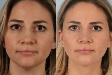 This patient underwent a combination rhinoplasty, liposuction of neck, micro liposuction of jowls and nasolabial folds, with fat grafting of marionette triangle and jaw line. The combination is truly transformative, revealing a stunningly beautiful face!
