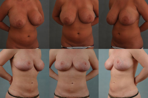 This young woman was presented to me with an excess of torso fat and dramatic breast sag.  Implants had been done previously by another doctor.