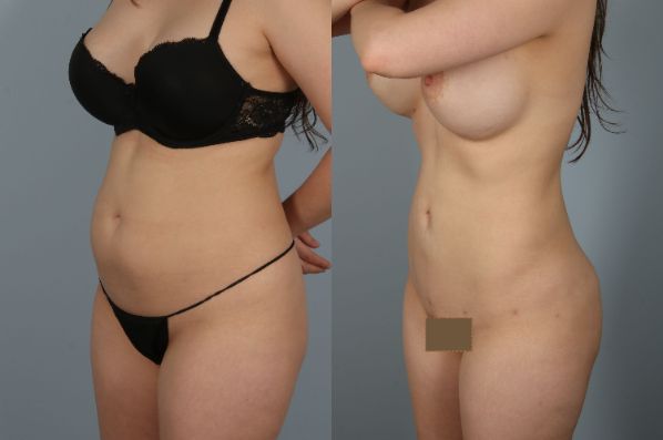 The patient underwent staged breast augmentation and total 360-degree torso circumferential liposuction including abdomen, flanks, hips, and hips which creates a beautiful and sensual shape!