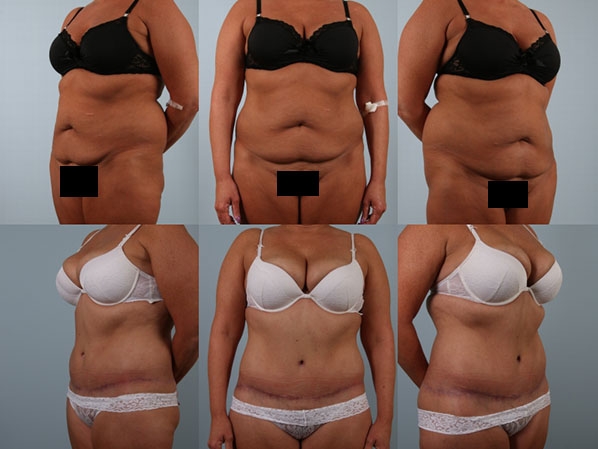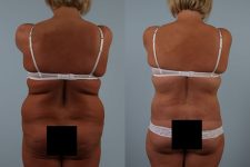 This patient underwent a combination Total Body Lift, liposuction of the hips and back and buttock fat grafting. She is shown months later with a dramatic transformation and fine cosmetic results.