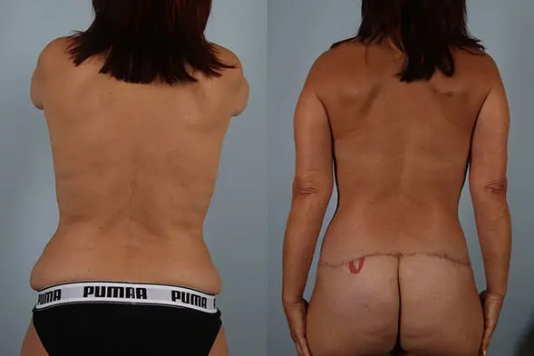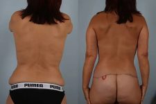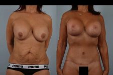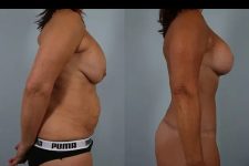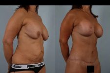 A total body transformation that combined breast lift, capsulectomy, removal and replacement of implants, as well as a total body lift including abdominoplasty along with diastasis repair, flankplasty, hip and buttock lift, liposuction of hips, and fat grafting of buttocks have transformed her into a beautiful, youthful body!