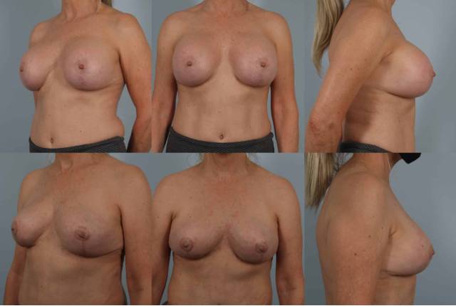 This patient suffered from repeat grade 4 capsular contracture. Removal of implants, breast lift and 2 stages of fat grafting enabled her to have a C cup breast.